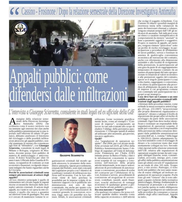Obblighi antiriciclaggio per gli Uffici della Pubblica Amministrazione. Ne ho parlato in un'intervista al quotidiano "L'Inchiesta".